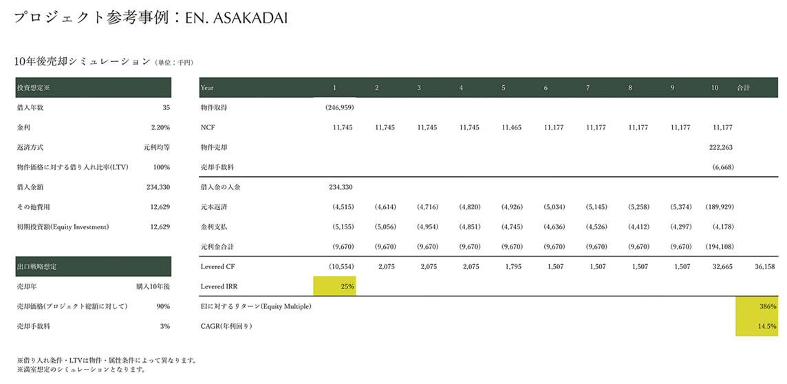 ここからは、プロトタイプであるEN.ASAKADAIの売却まで含めたシミュレーションをみていきましょう。