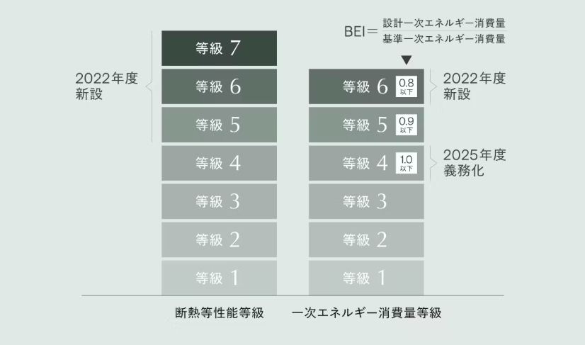 断熱等性能等級5、一次エネルギー消費量等級6(ZEH水準)を満たしており、将来の省エネ基準を見据えた仕様です。