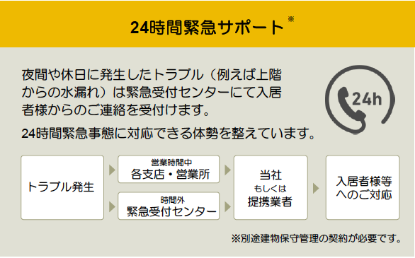 また、工事が発生した場合の費用は原則一括払いとなりますが、ローン返済や手元資金確保のご要望に応じて相談し、控除月の繰越や分割での控除にも対応。原状回復費の賃料控除分割などを実施する場合もあり、オーナー様第一のご提案を実施しています。