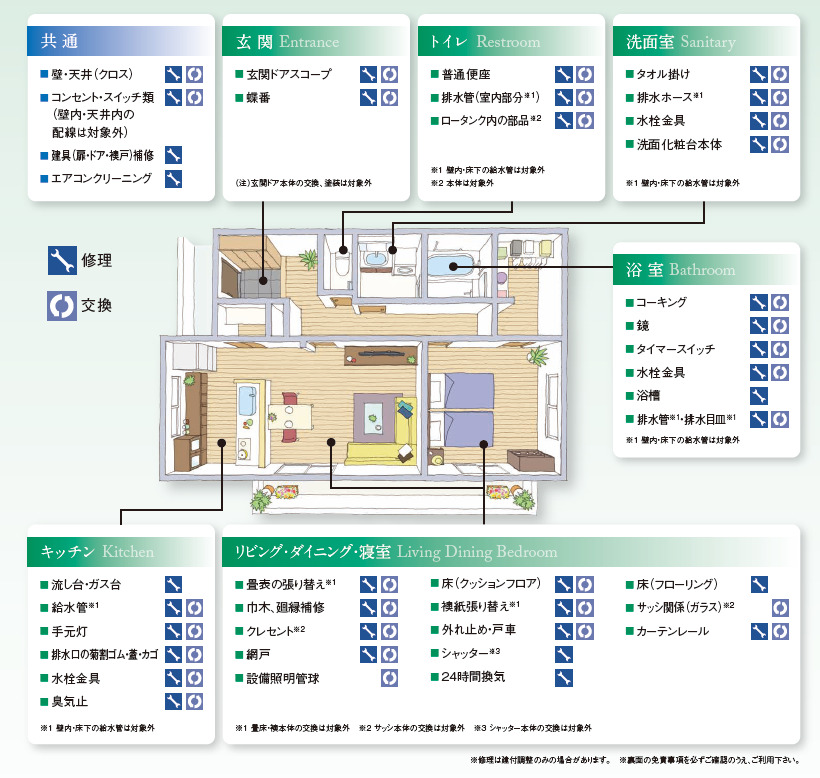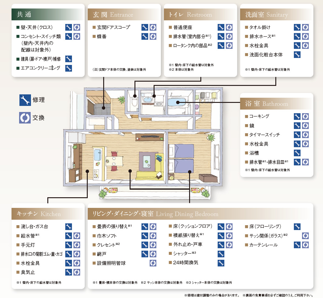退去時の原状回復費、入居中の一部小規模修繕を保証してくれるのが、この原状回復パック。